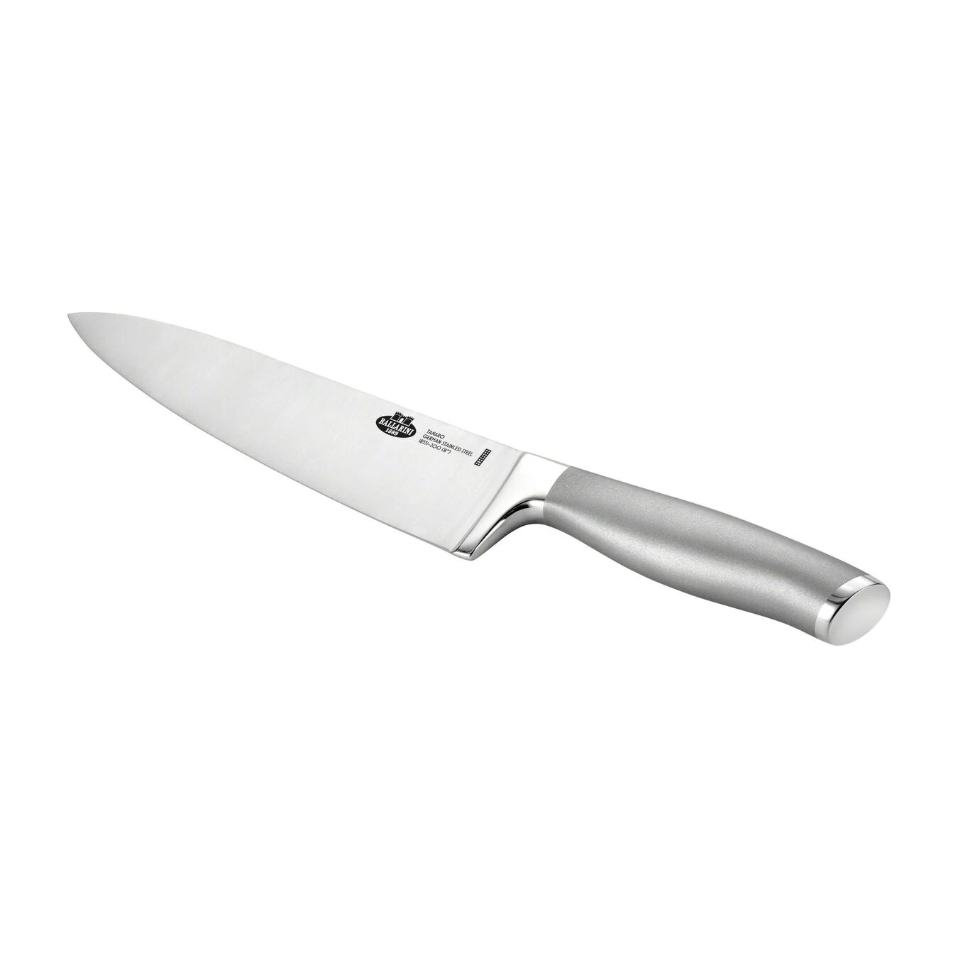 - Mango de acero inoxidable arenado ergonómico.