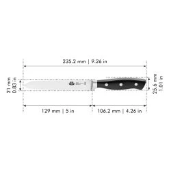 - Mango sintético, ergonómico con aislante térmico, resiste hasta 160ºC.