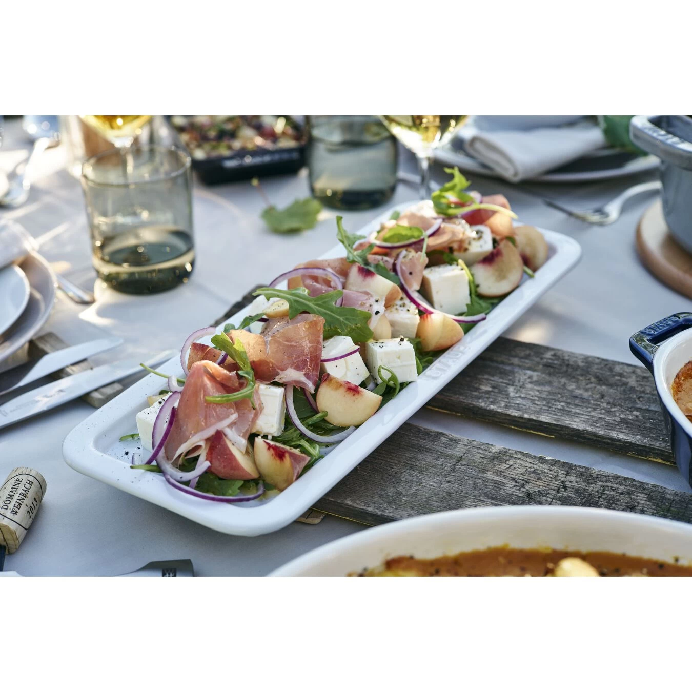 Conoce la importancia de la presentación de los platos especialmente si espera invitados a comer. Esta bandeja cerámica de STAUB le permite hacer presentaciones únicas gracias a su colorido esmaltado y sus dimensiones de 14 x 36 cm.