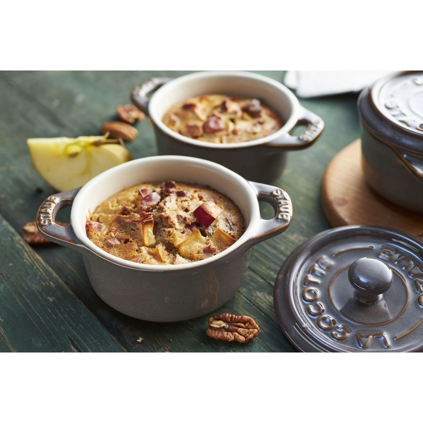 Para que el manejo sea sencillo se ha dotado a la Cocotte de asas laterales. Esta MiniCocotte es un práctico complemento para su cocina, versátil para preparar y servir una gran cantidad de platos. Es ideal para cocinar y presentar raciones individuales. Gracias al esmalte la limpieza tras el uso es muy sencilla. Con la Cocotte STAUB color gris antiguo servirá de forma elegante postres y platos al horno.