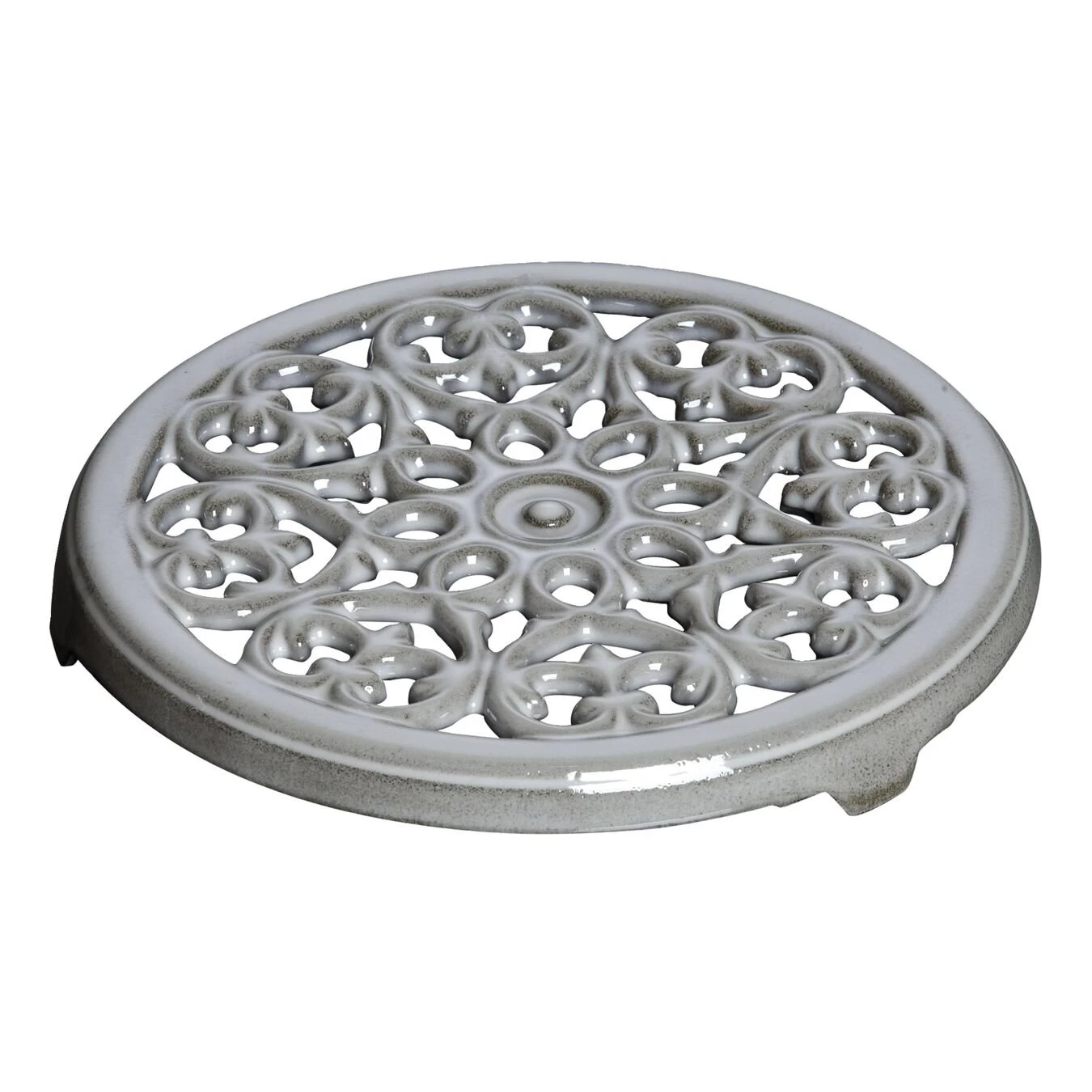 El salvamanteles Lily de la serie de Accesorios de Staub, de color gris y hierro colado, le ofrece un soporte práctico y seguro, donde colocar cazuelas, teteras, fuentes, moldes para horno y otros recipientes calientes. Con un diámetro de 23 cm, el salvamanteles redondo atrae todas las miradas, gracias al singular e intrincado diseño que forma un lirio en el centro. La flor de lis, símbolo heráldico que solía ornamentar las armas de reyes y emperadores, embellece ahora este elegante y útil accesorio Staub en la cocina y el comedor
