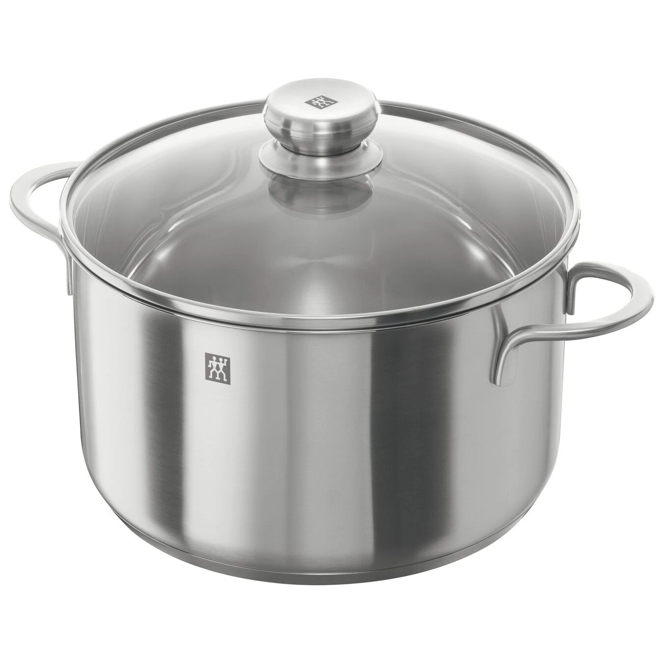 La batería de cocina de acero inoxidable Twin Nova incluye todo lo necesario para preparar una amplia variedad de platos. La tapa es de cristal para que pueda ver fácilmente el interior y el estado de cocción del plato. La completa batería de cocina Twin Nova está contiene dos ollas de 20 cm (una alta y una mediana), una olla de 24 cm, un cazo sin tapa de 16 cm y una rustidera con dos asas de 24 cm. Prepare sus platos favoritos cómodamente con esta batería de cocina Zwilling.