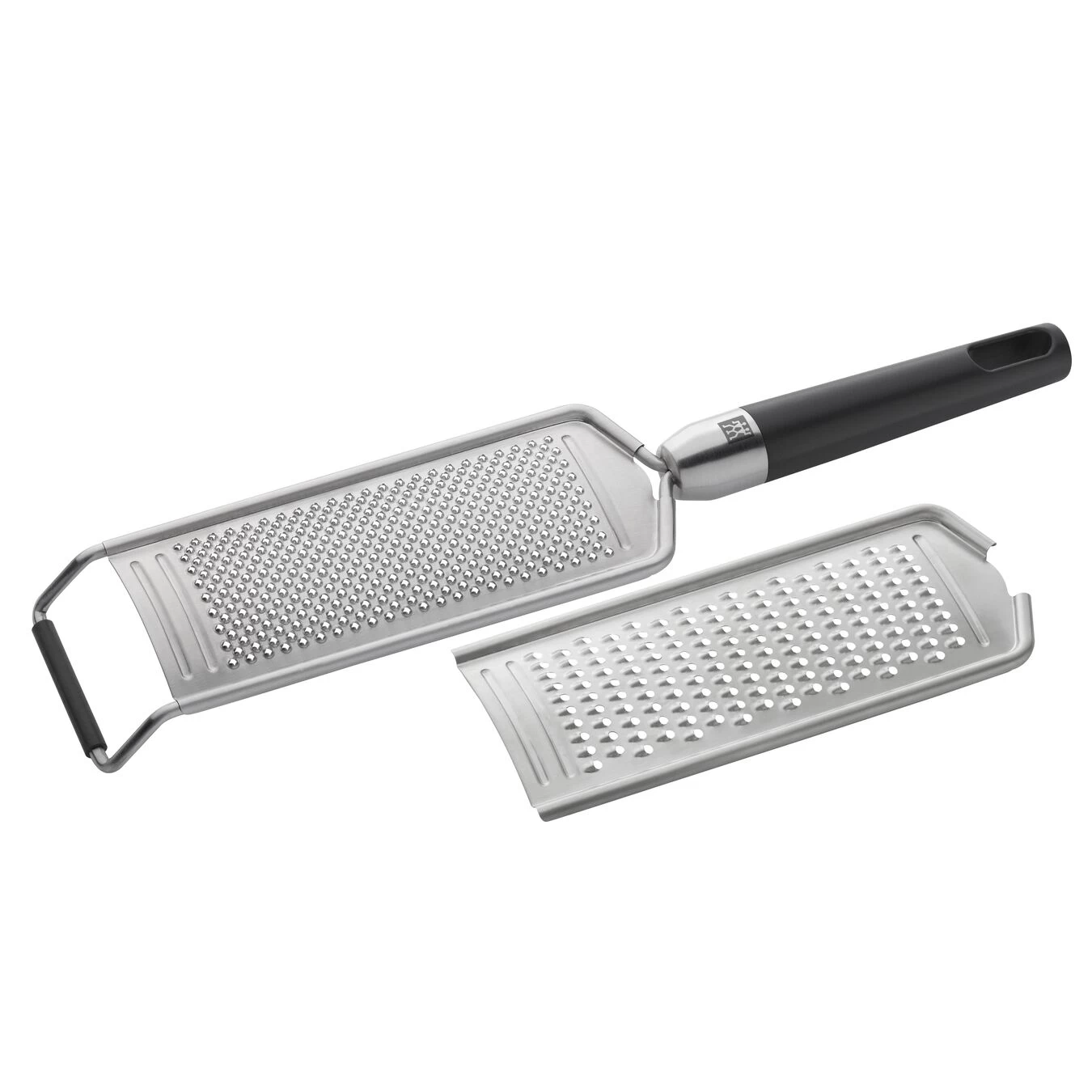 El rallador multiusos de la serie de ZWILLING TWIN® Pure Black es de gran ayuda para rallar queso y verduras. El acero inoxidable 18/10 y el mango sintético de color negro le dan un elegante aspecto, además de resistencia e higiene.