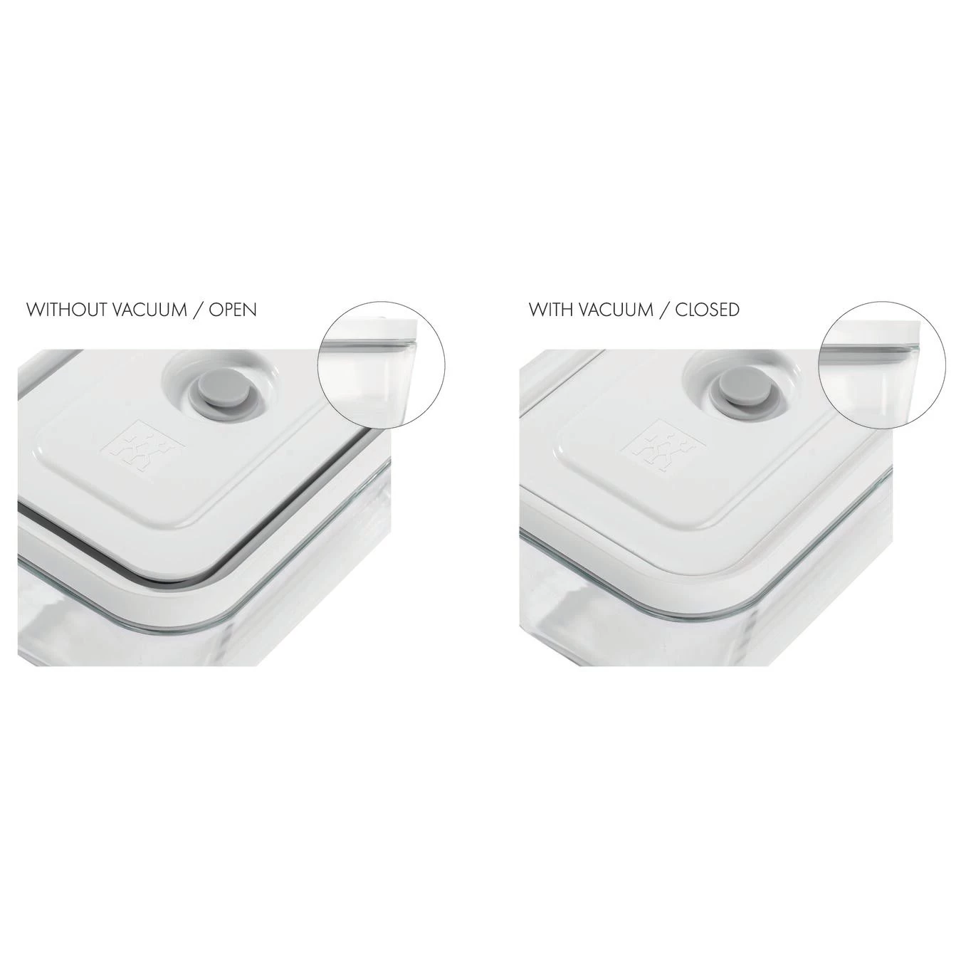 - Tapa de vacío con tecnología innovadora de doble sellado y función de indicador de vacío: si se baja la tapa interior, la caja está al vacío.