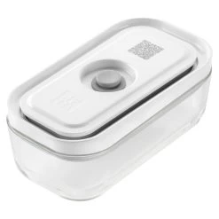 Revolución de frescura en S. Esté preparado para un todoterreno absoluto para su hogar: además de la opción como un pequeño frasco de almacenamiento, el recipiente de vidrio FRESH & SAVE S como recipiente al vacío asegura una vida útil más larga, protege importantes vitaminas y nutrientes de los alimentos, reduce el desperdicio de alimentos. Además, el recipiente de cristal de alta calidad es perfectamente adecuado para calentar o recalentar preparaciones tanto en microondas como horno. El volumen total es de 350 ml. Las sobras pequeñas, las hierbas y la mitad de un aguacate se envasan en unos segundos con tan solo presionar el botón de la práctica bomba FRESH & SAVE. El vacío conserva los aromas, vitaminas y nutrientes de manera eficiente. Este recipiente es apto para lavavajillas, lo que hace que la limpieza sea un juego de niños. Otro punto para destacar es el uso del código QR para conectar los recipientes de vacío de la serie FRESH & SAVE a la aplicación ZWILLING Culinary World. De este modo, siempre tendrá una descripción general de todo lo almacenado en el refrigerador. La aplicación gratuita le enviará un recordatorio a tiempo tan pronto como finalice la vida útil de los alimentos. Funciona con la bomba de vacío Fresh & Save.